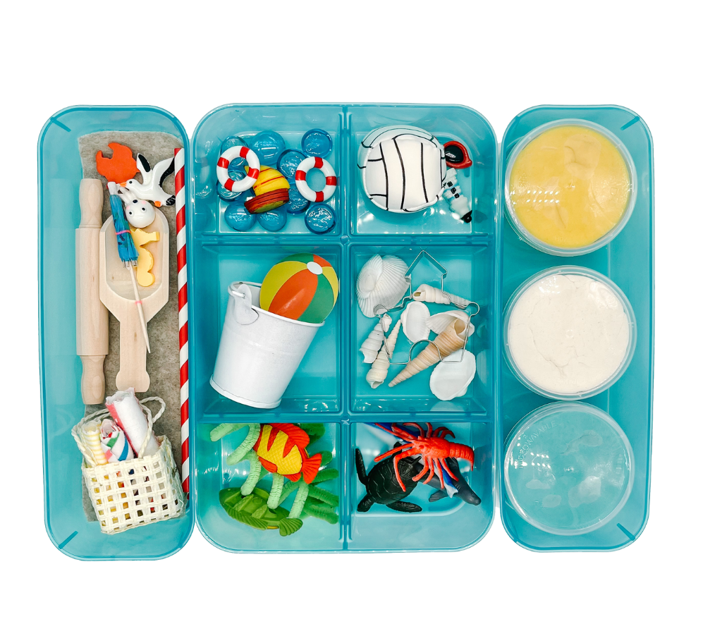 Missing your time at the beach? Worried about rain on your upcoming beach trip? Our Beach Bin has you covered! Dive into this bright and sunny bin for hours of play! Build a boardwalk with the popsicle sticks, decorate a sandcastle, and go check out a lighthouse while a seagull soars overhead.