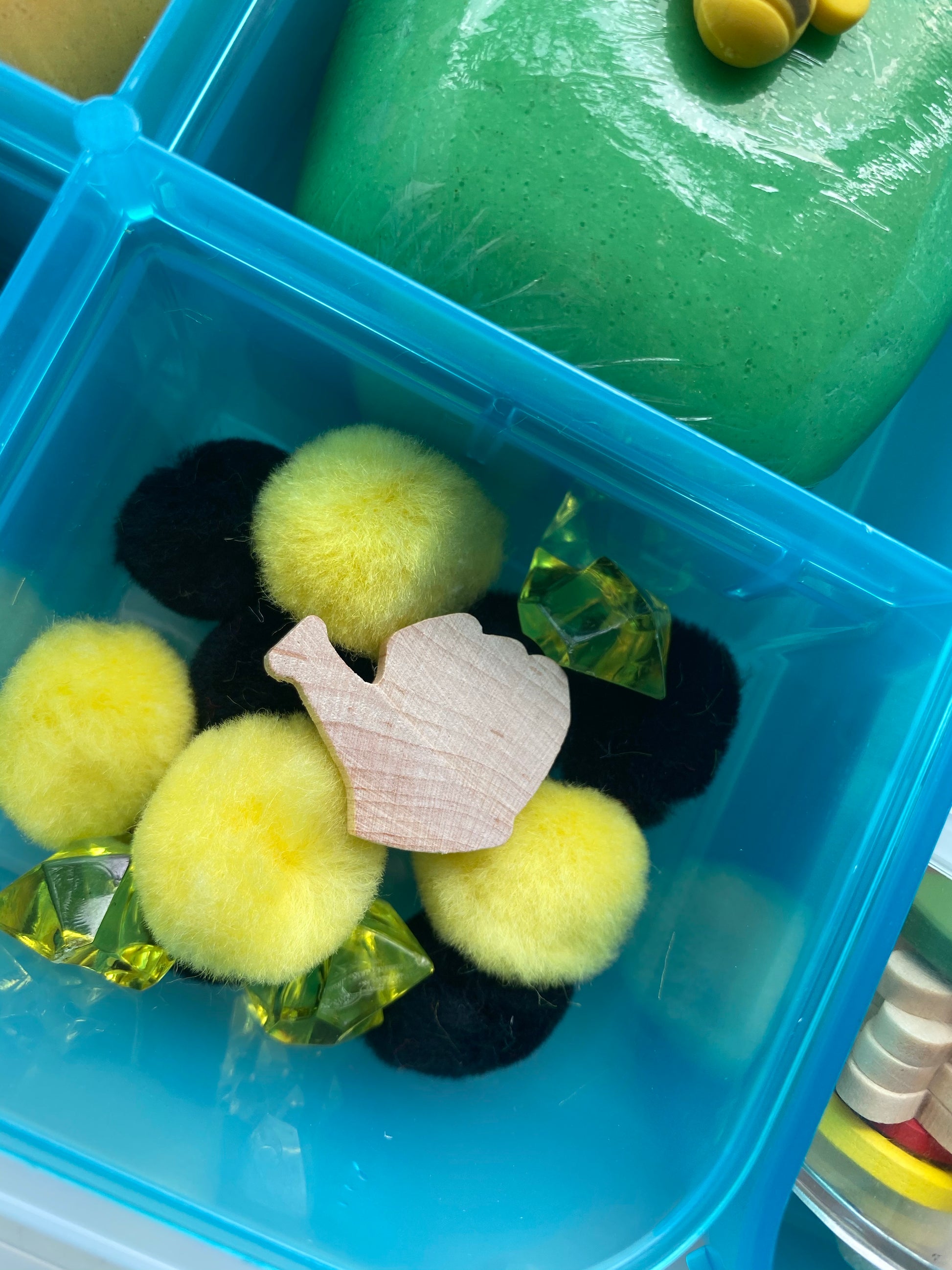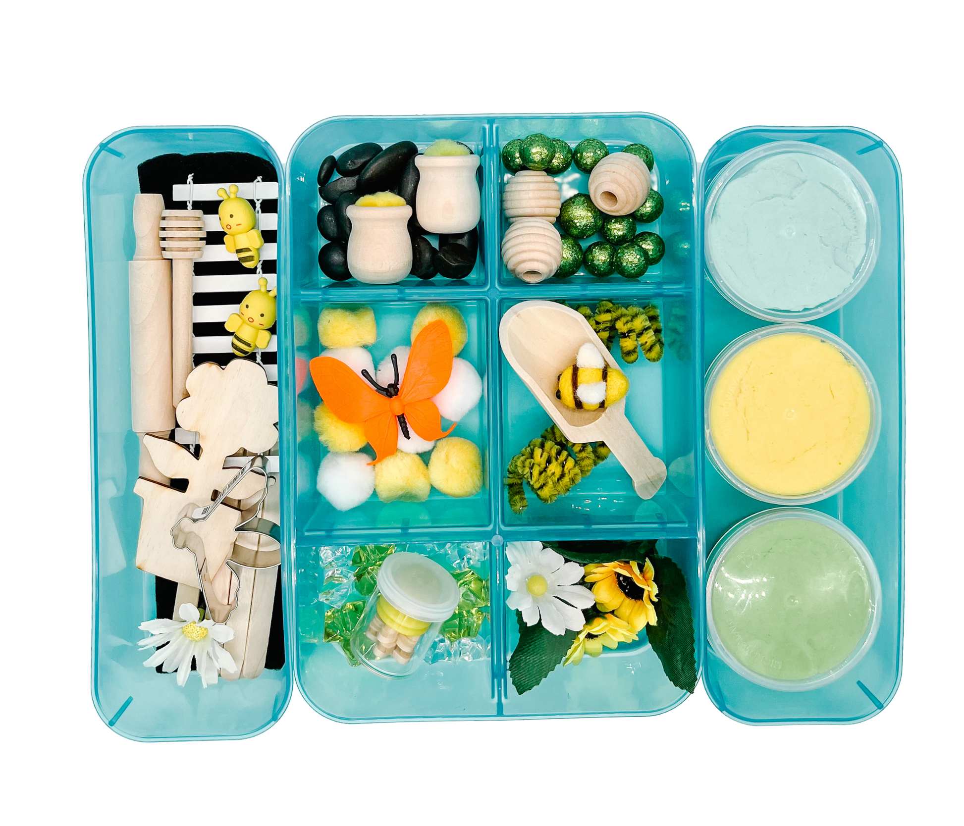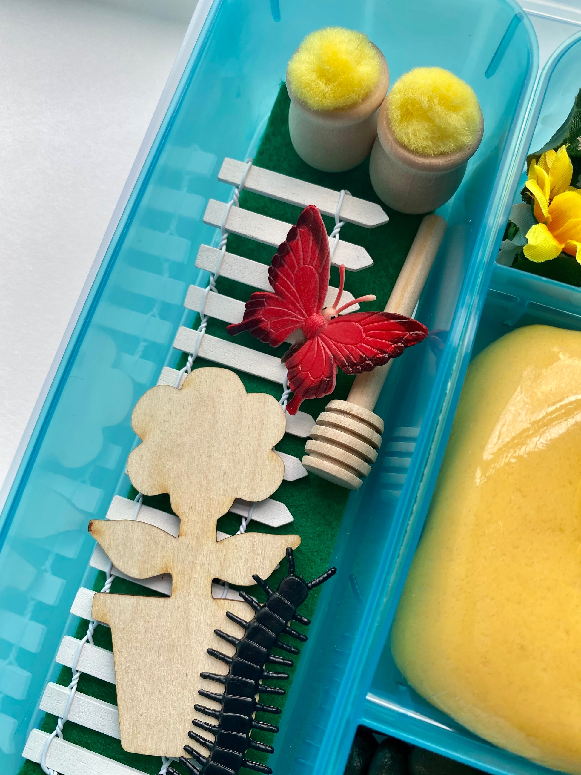 Inspired by our own Bumblebee Bins name, our Bumblebee & Bug Garden Bin is filled with flowers, and fencing to build a garden of your own! This bin is perfect for springtime fun as the flowers are blooming and bees are buzzing around outside!