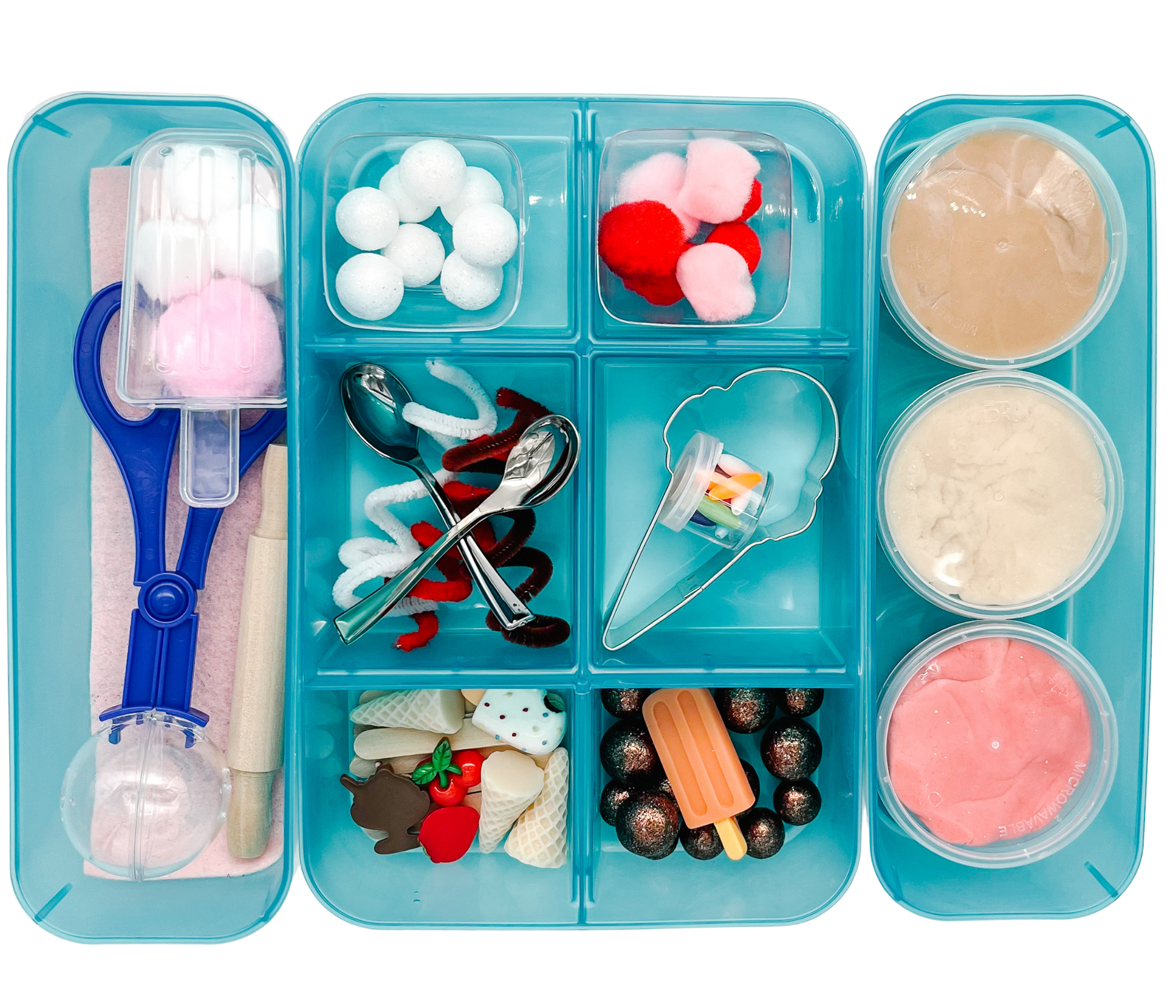 It's time for everyone to chill out! With our Ice Cream Bin, relaxing and dreaming of sweet ice cream is easy. Mini ice cream cones, an ice cream scoop and a customizable popsicle are the highlights of this fun bin! Kids can make their own ice cream sandwiches, cones, and sundaes using all of the "ingredients" inside! The list goes on & so does the fun!