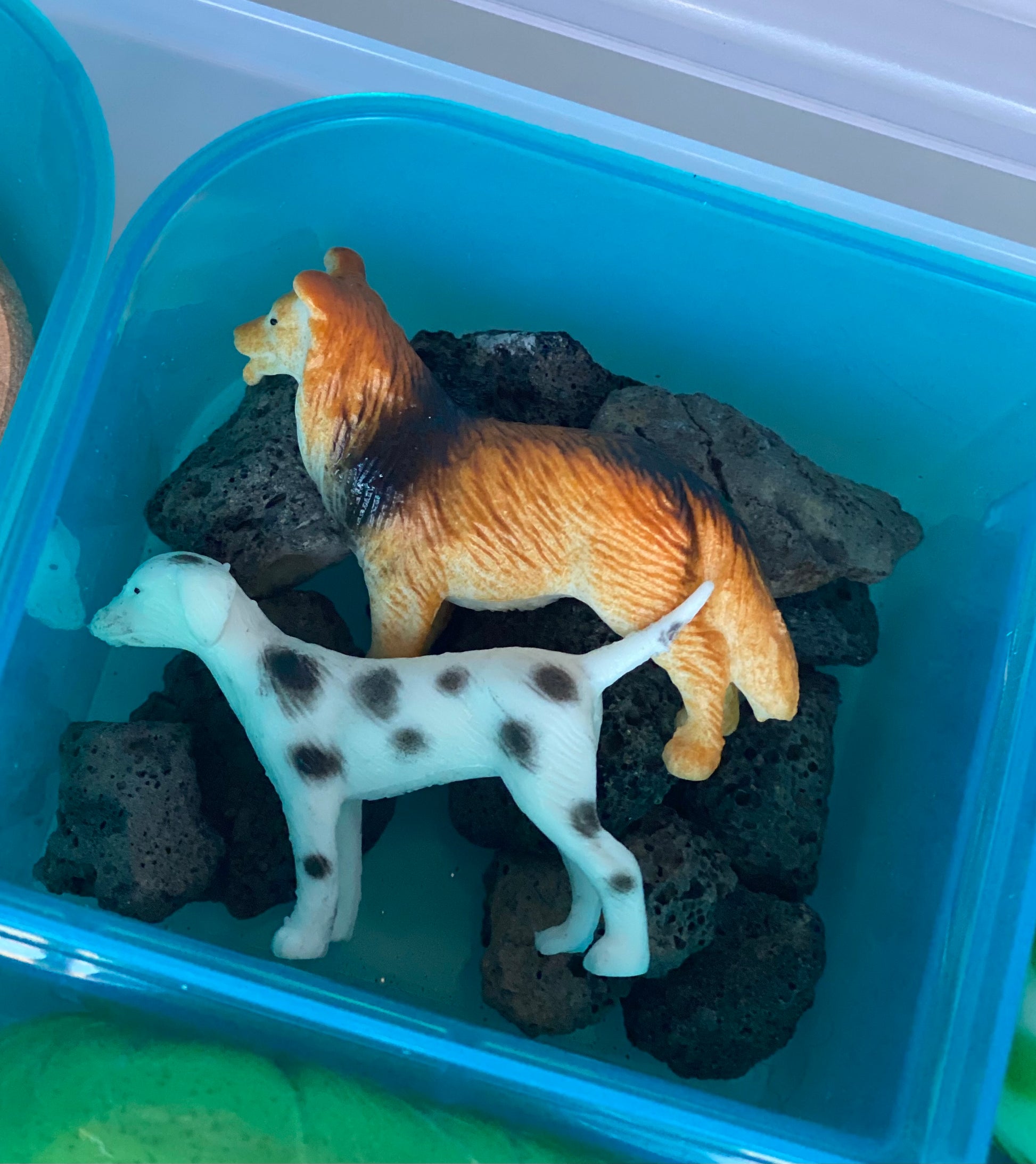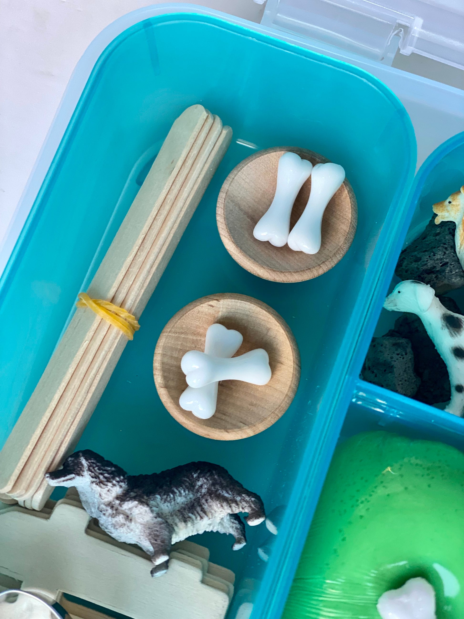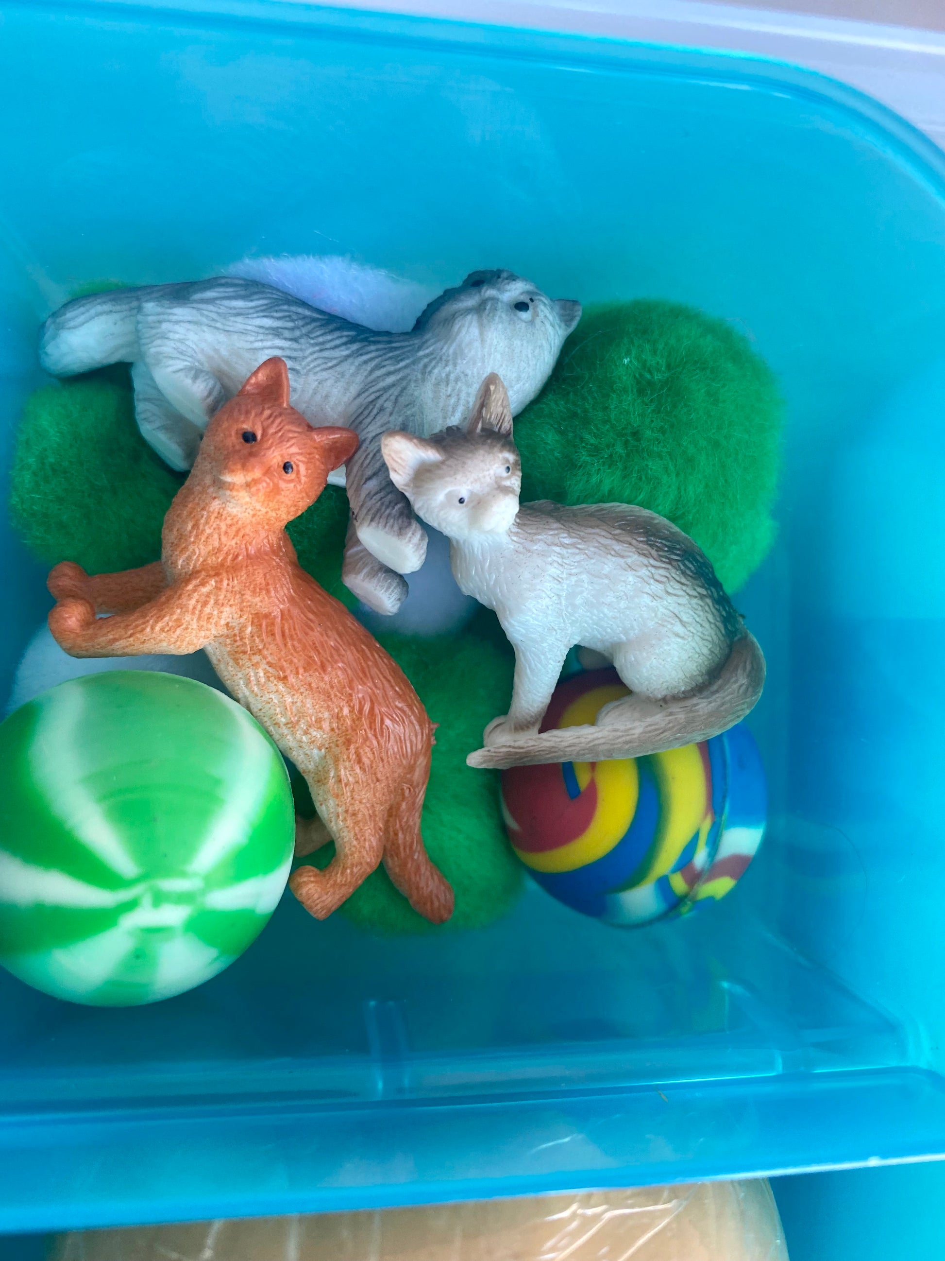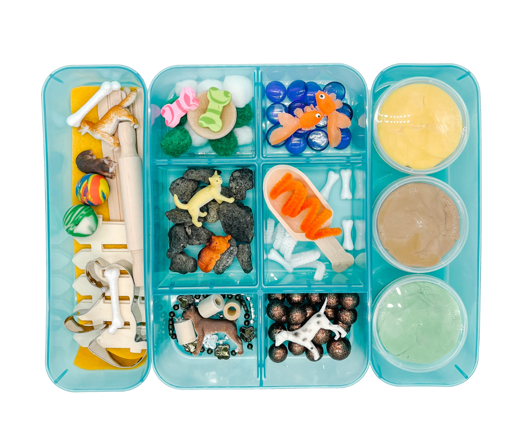 Not ready for a REAL pet for your kids! Our Pets Sensory Play Dough Bin is the answer! Complete with dogs, cats and goldfish, your kids will love caring for their new creatures. Let their imaginations run wild as they feed, water, and play with their new pets!