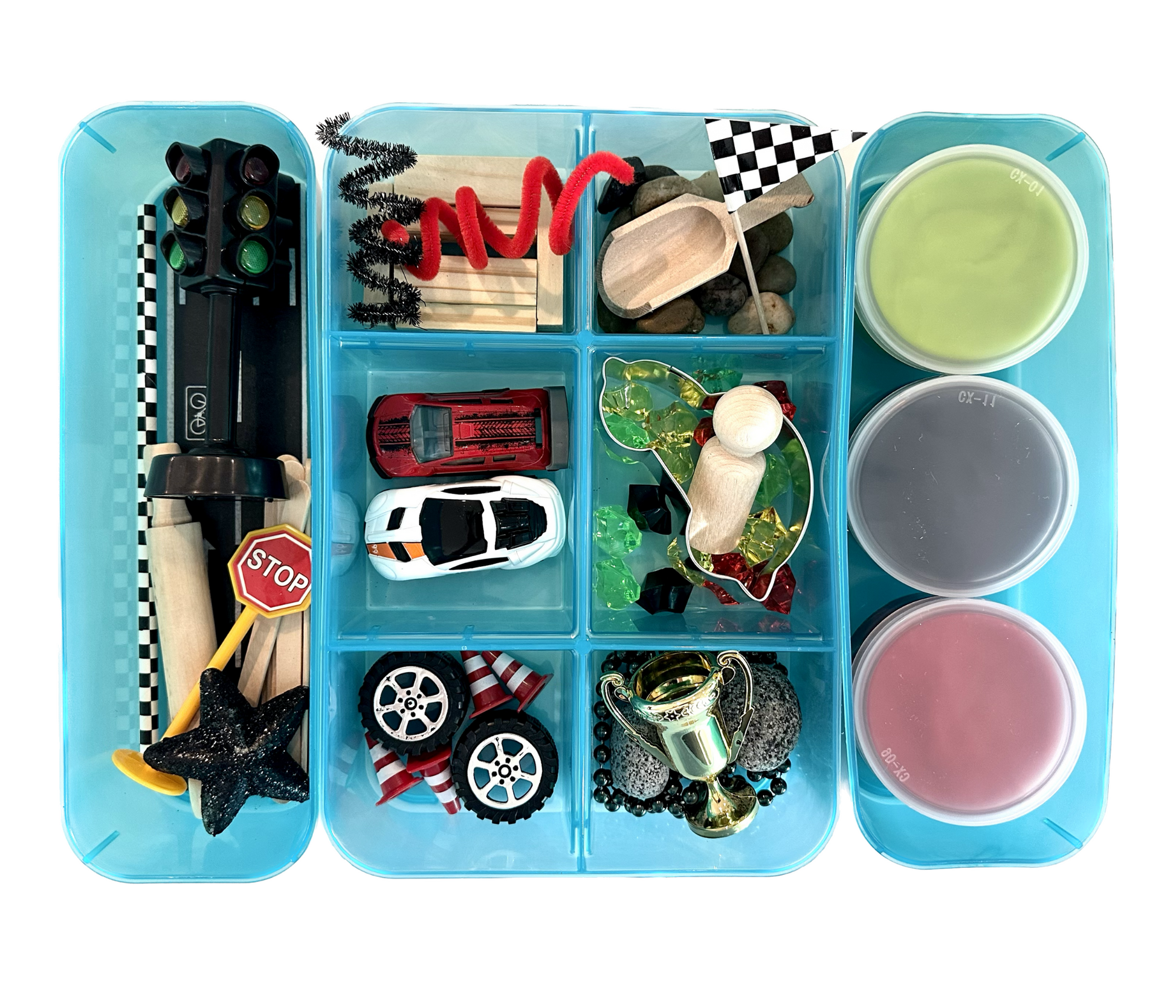 Zoom Zoom!!! Build your own racetrack with the loose parts and race your little heart out! Create an obstacle course and see how fast you can get through it! First one to win takes home the trophy! On your mark, get set, GO!