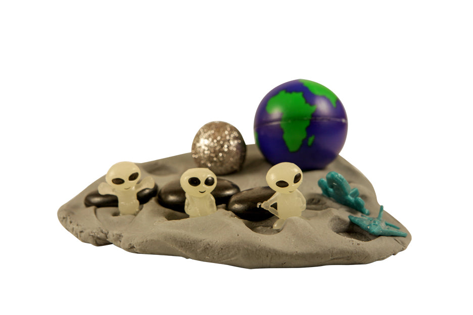 To the moon we go! Let your kids explore space, complete with aliens and lava rock that looks like moon rock! Their minds will develop all sorts of skills while digging into all things astronomy in our Outer Space Bin!